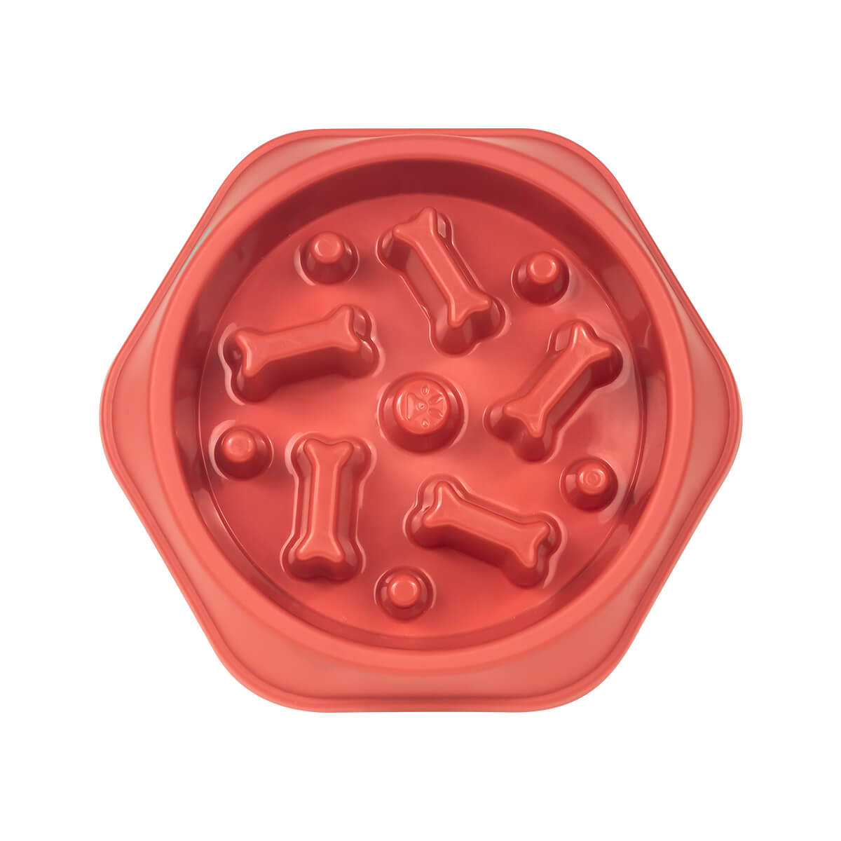 Plato de alimentación lenta para mascotas, fabricado en plástico de grado alimenticio. Ideal para perros pequeños y medianos. Su diseño interior con figuras de hueso ayuda a reducir la velocidad al comer, favoreciendo una digestión saludable. Su base cuenta con seis almohadillas antideslizantes, que evitan deslizamientos durante su uso.