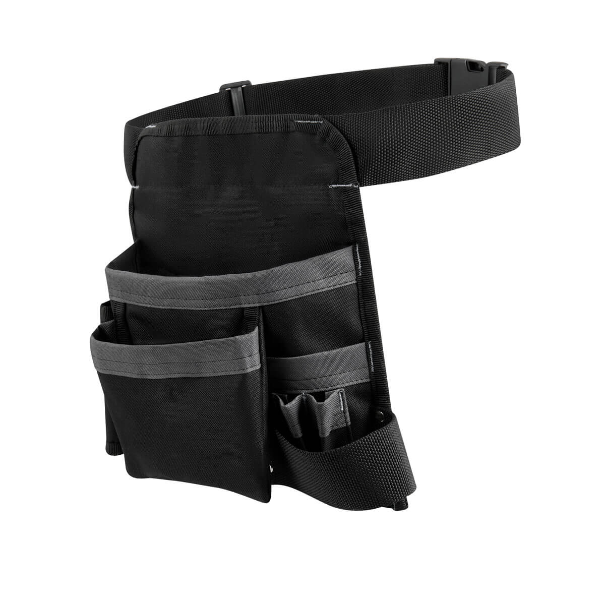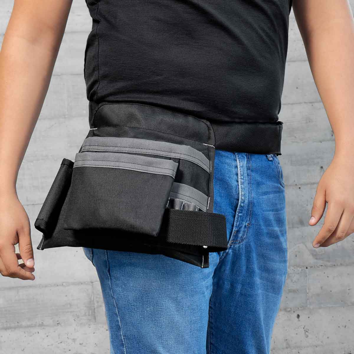 Bolsa para herramientas ideal para sostener y tener acceso rápido a destornilladores, llaves, cintas, martillo, pinzas etc… Incluye 5 compartimientos, 1 porta martillo y cinturón ajustable con broche de plástico.