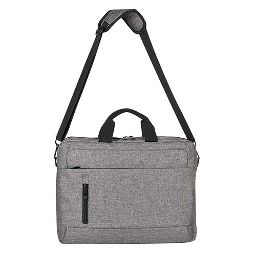 Bolsa principal con cierre y espacio para laptop de 15″, organizador y bolsa interna con cierre, 2 bolsas frontales con cierre y aditamento especial trasero para colocar en trolley. Incluye correa ajustable y desmontable. Asas de agarre superior.