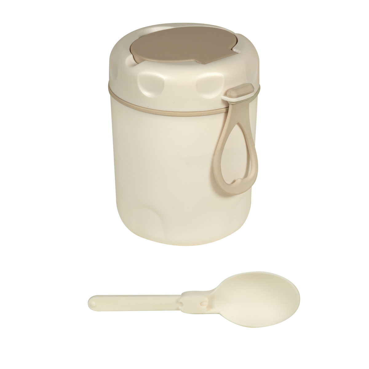 Contenedor de alimentos con interior de acero inoxidable, perfecto para conservar la temperatura de los alimentos por más tiempo. Su tapa de rosca garantiza un sellado hermético, evitando derrames indeseados durante su transporte. Además, incluye una cuchara plegable, misma que se guarda en un compartimento integrado en su tapa. Con un diseño compacto, este contenedor es ideal para llevar tus alimentos de manera fácil y sin complicaciones. Apto para el uso en lavavajillas. No apto para uso en microondas.