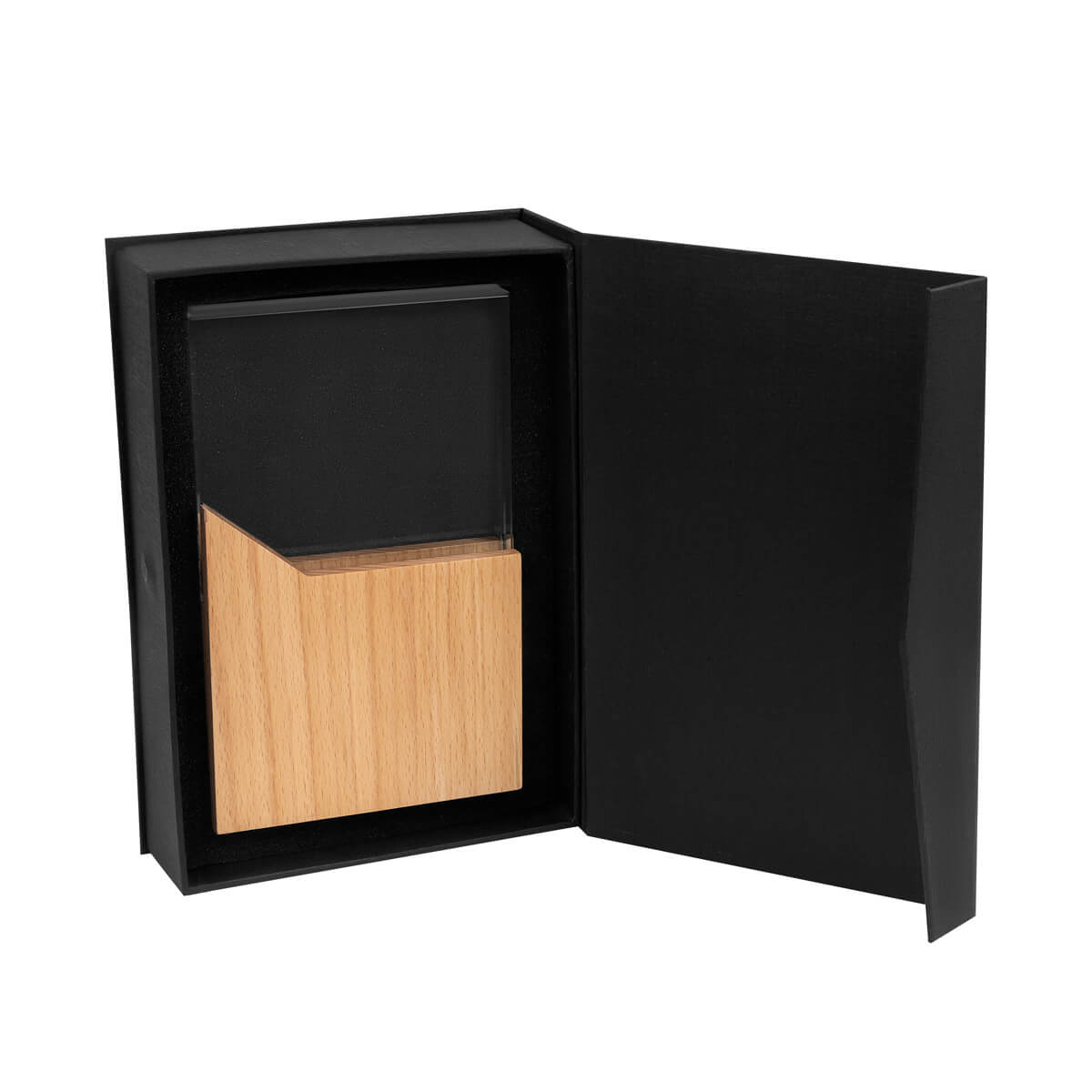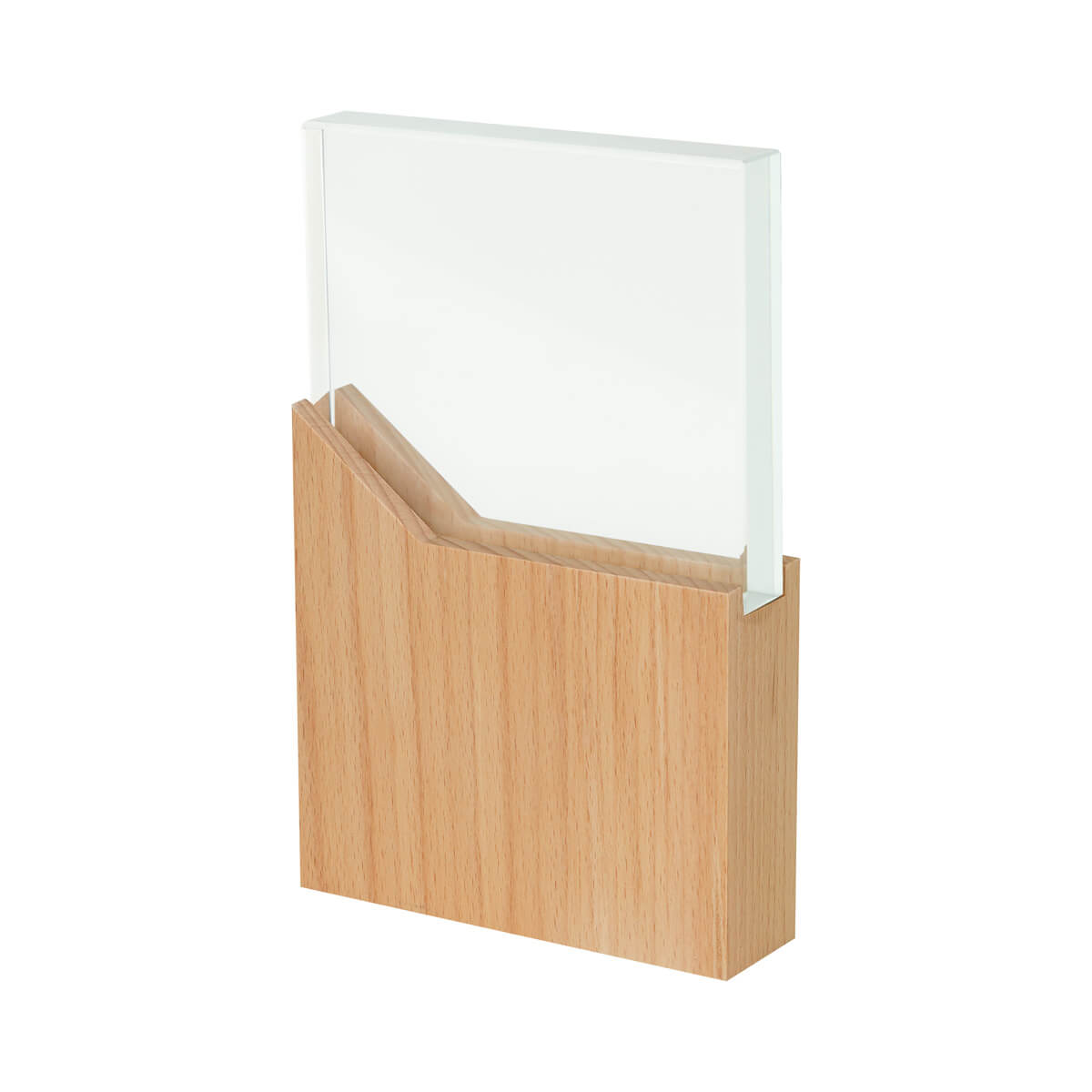Elegante y clásico reconocimiento que combina vidrio y madera de pino. Perfecto para destacar los logros y celebraciones especiales. Incluye caja de regalo con broche imantado para cerrar y esponja interna para protección. La madera es un producto natural el cual puede presentar variaciones en tonalidades y vetas