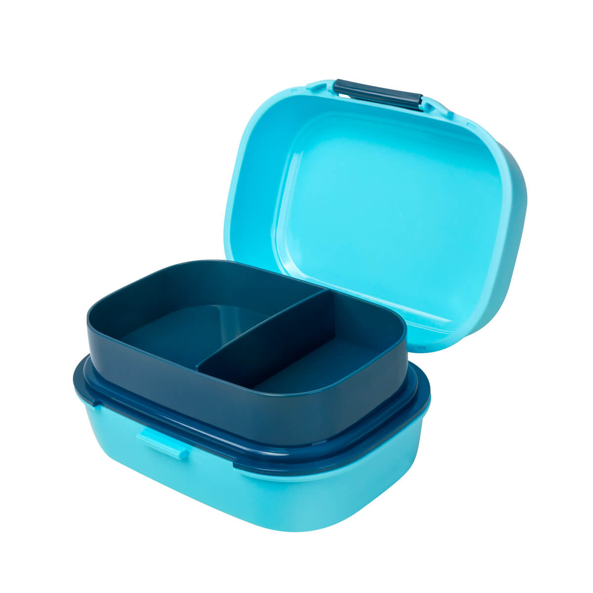 Set escolar de lonchera y cilindro. El cilindro es de una pared de plástico, tapa con sistema de rosca y sobretapa para cubrir la boquilla, ideal para evitar derrames. La lonchera de plástico tiene una división interior removible con un tamaño ideal para guardar porciones equilibradas y mantener los alimentos frescos y en su lugar. Este set esta diseñado especialmente para hacer de cada comida una experiencia divertida y práctica. Ideal para que los pequeños lleven su almuerzo al colegio o a cualquier actividad. Incluye cuchara de plástico. Apto para lavavajillas y microondas.