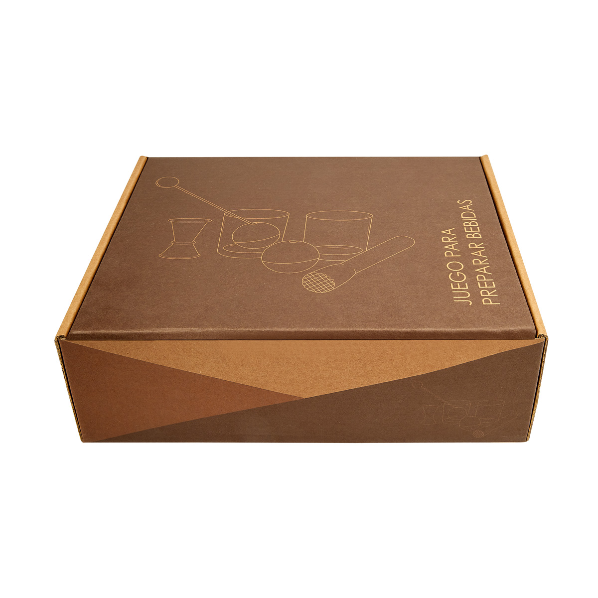 Medidas: 24.2 x 7.5 x 19.7 cm Caja / 7 x 8.4 cm Vaso / 4.2 x 6.5 cm Jigger / 5.1 cm Esfera para hielo / 2.5 x 18.5 cm Batidor / 2.7 x 21.3 cm Mortero