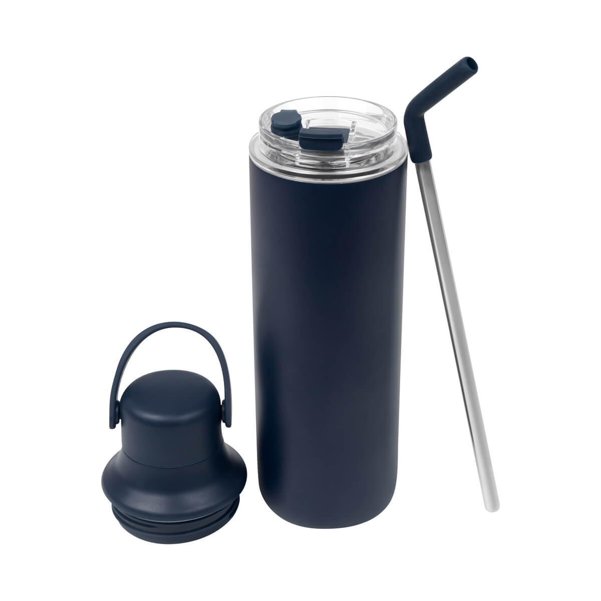 Original set de termo con tapas intercambiables. Incluye termo doble pared, cerrado al vacío. Pared interna y externa de acero inoxidable. Cuerpo con terminado rugoso que permite tener un mejor agarre. Cuenta con una tapa de plástico con doble sistema de rosca, la más amplia permite introducir hielos y otros ingredientes, mientras que su segunda rosca, incluye una boquilla pequeña, que facilita su uso. Su segunda tapa, también con sistema de rosca, incluye una sobre tapa tipo push y ranura especial para popote. Mantiene temperatura caliente 6 hrs y temperatura fría 12 hrs. Capacidad 20 Oz. Incluye popote metálico con boquilla de rubber y caja de regalo.