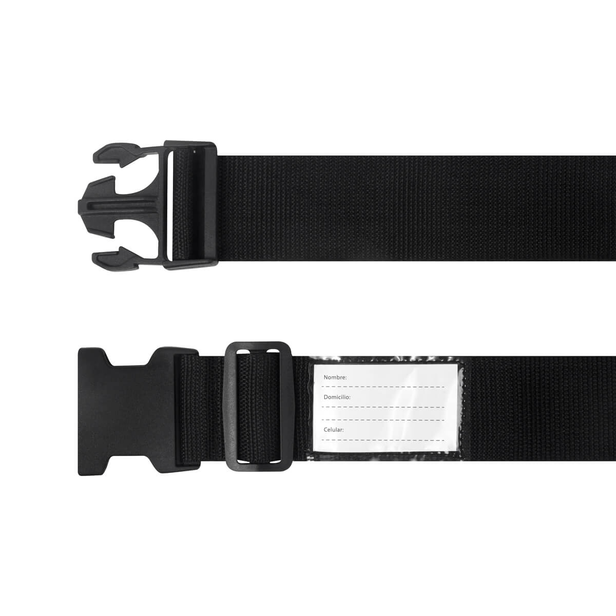 Material: Plástico Reciclado Estuche / Metal Candado / Poliéster Cinta / Plástico Identificador