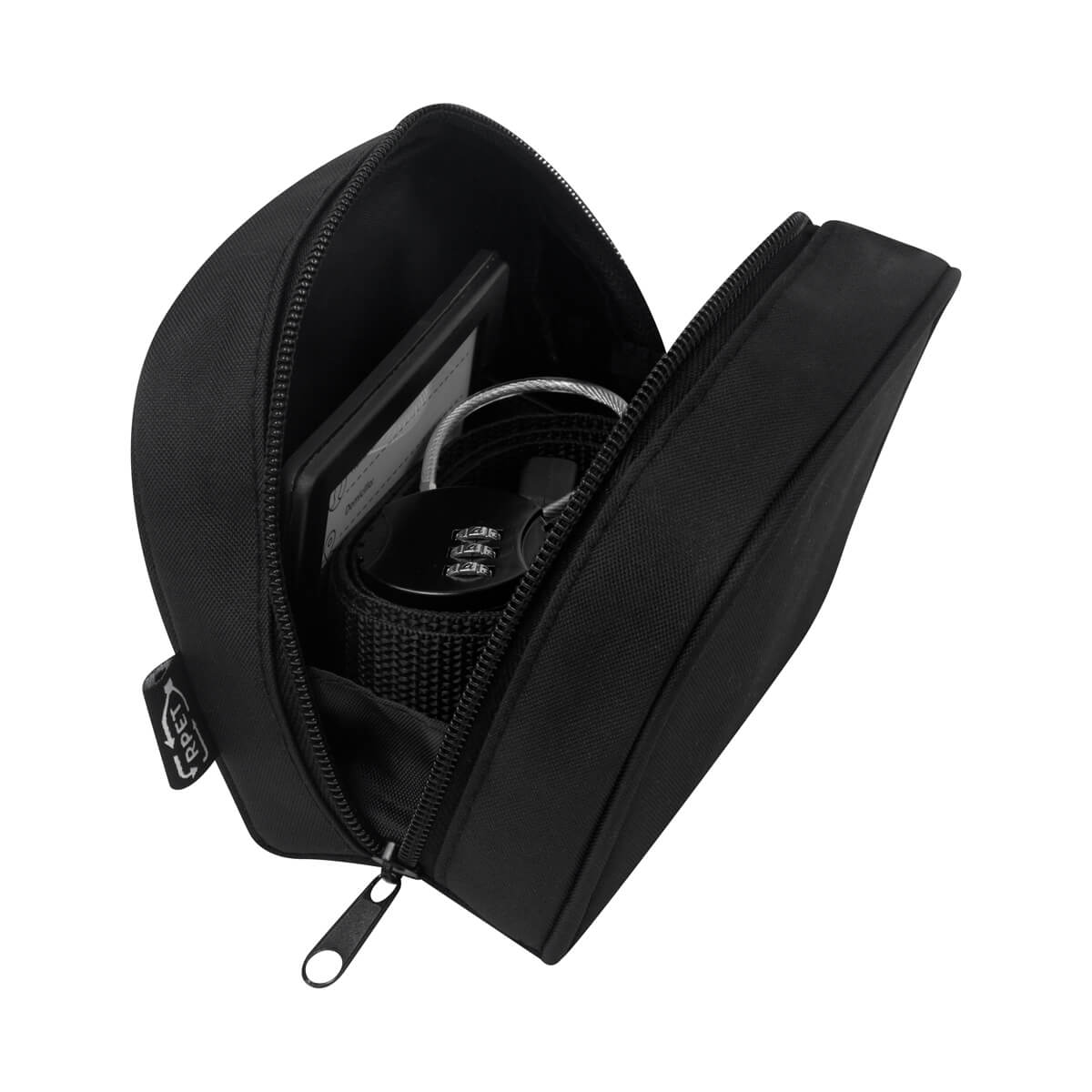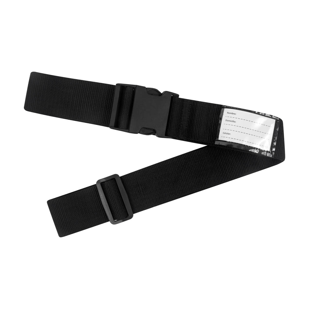 Set de viaje para maleta. Incluye candado con combinación, identificador, cinta de seguridad con identificador integrado y estuche fábricado con material reciclado. Todo lo esencial para proteger tu equipaje, en un solo kit.