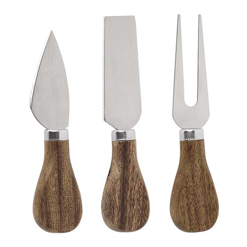 Set con 1 tabla, 2 cuchillos y 1 tenedor para quesos. Incluye caja individual. La madera es un producto natural el cual puede presentar variaciones en tonalidades y vetas.