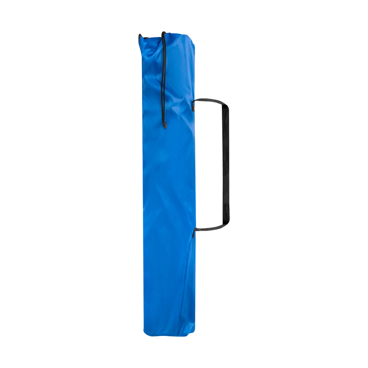 Silla plegable de fácil armado con reposabrazos, porta vasos de malla y funda con jareta y correa.