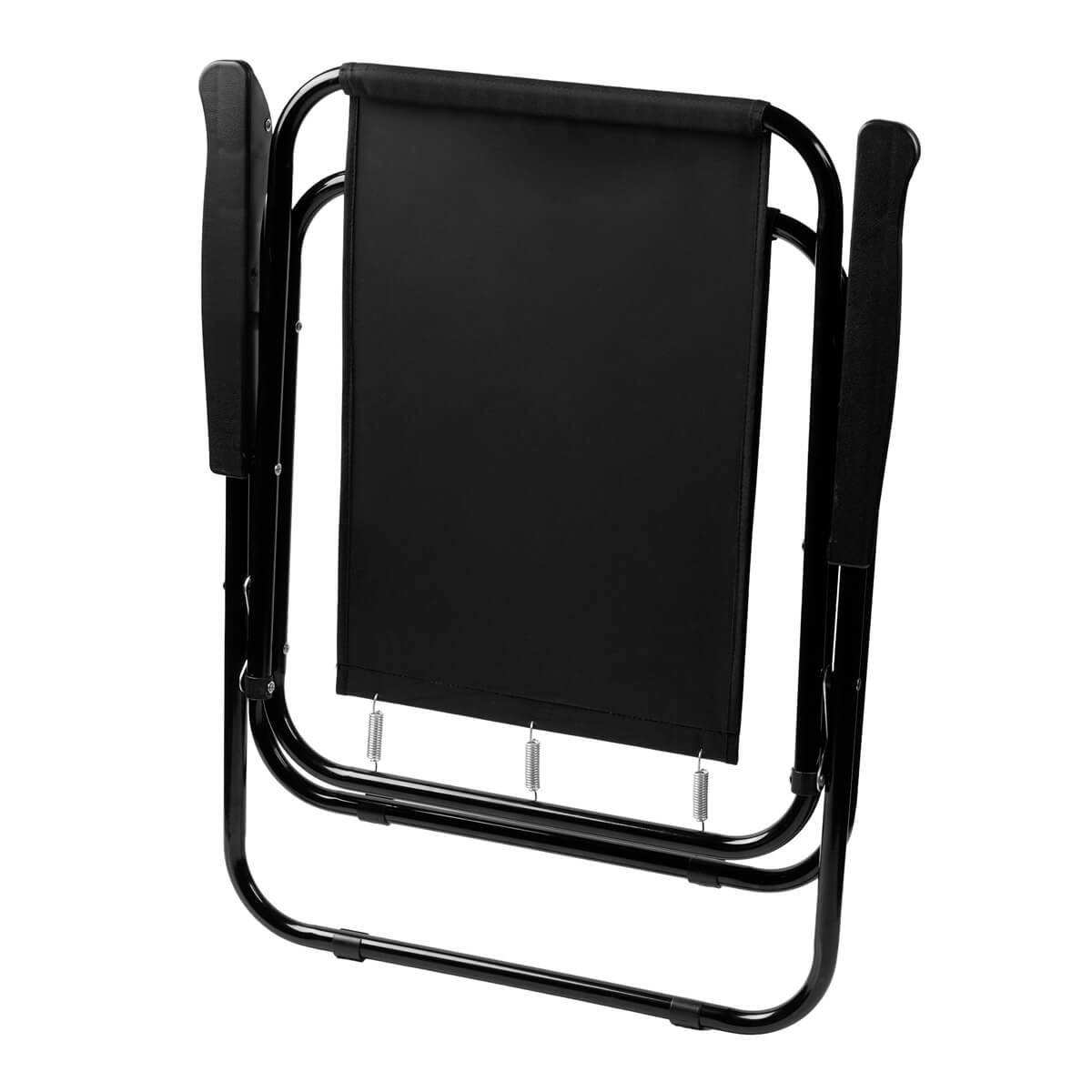 Silla plegable con descansabrazos. De estructura ligera, fácil de armar y guardar, ocupando poco espacio al estar plegada.
