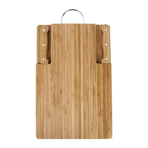 Tabla de cocina. Incluye tenedor y cuchillo. Incluye caja individual. La madera es un producto natural el cual puede presentar variaciones en tonalidades y vetas.