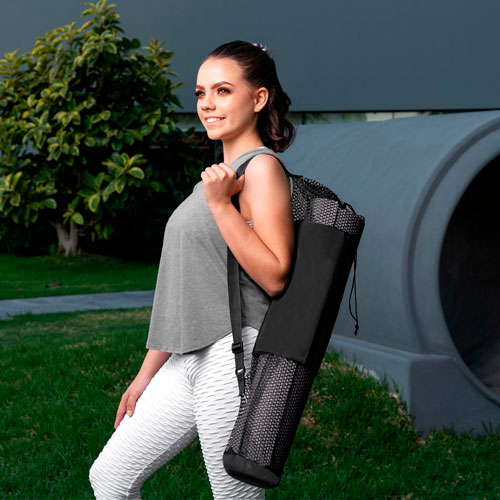 Tapete de yoga acolchonado multiusos, material antideslizante con grosor de 5mm. Incluye funda con cordón para cierre de jareta y correa.