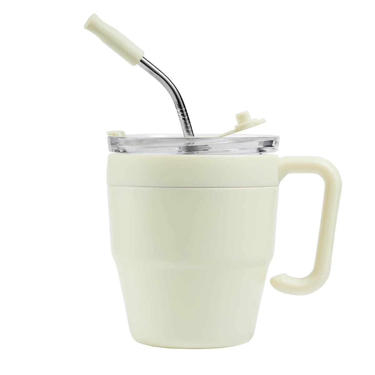 Doble pared. Cerrado al vacío. Pared interna y externa de acero inoxidable. Tapa push de plástico con sobre tapa de silicón removible y ranura especial con tapón para popote. Incluye popote metálico con boquilla de silicón. Mantiene temperatura caliente 6 hrs y temperatura fría 8 hrs aproximadamente. Incluye caja individual.
