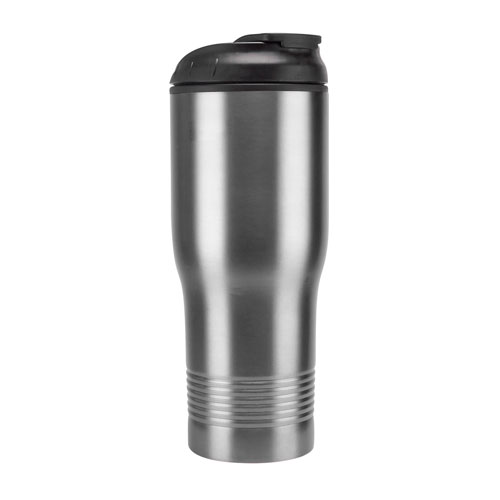Doble pared. Pared interna plástico, pared externa acero inoxidable. Tapa de plástico con boquilla y sobre tapa de cierre a presión. Incluye caja individual.