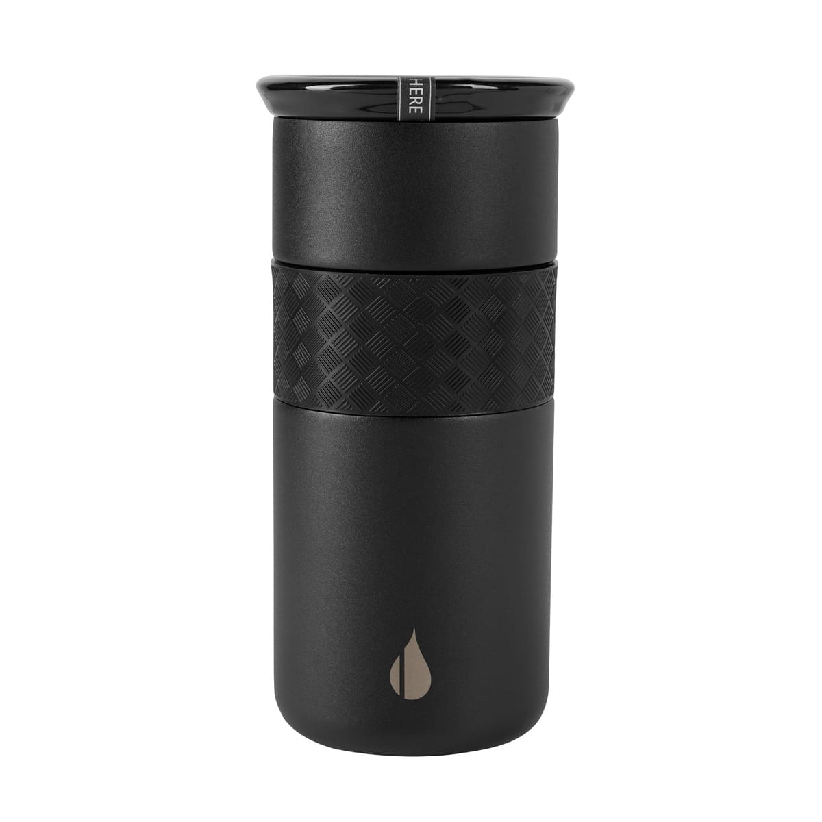 Tecnología TrueBarrier™ que usa aislamiento de triple pared. Doble pared de acero inoxidable y una capa de revestimiento de cobre. Cerrado al vacío. Material BPA free. Tapa de cerámica con tapón de seguridad, su forma evita derrames y quemaduras al tomar. Banda de silicón texturizada antiderrapante. Compatible con portavasos. Base antiderrapante. Mantiene temperatura caliente 6 hrs y fría 18 hrs aproximadamente. Incluye caja individual.