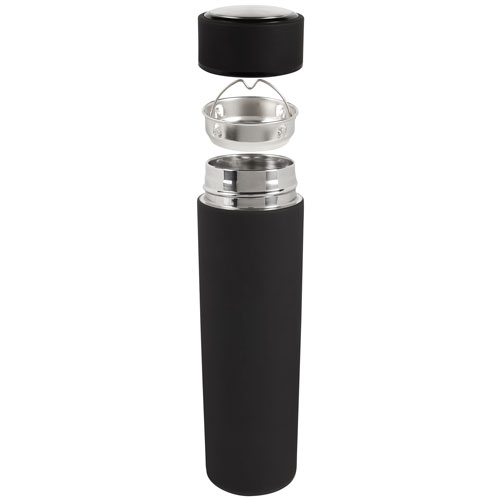 Doble pared. Cerrado al vacío. Pared interna y externa acero inoxidable. Mantiene temperatura caliente 6 hrs y temperatura fría 8 hrs aproximadamente. Incluye infusionador y caja individual.