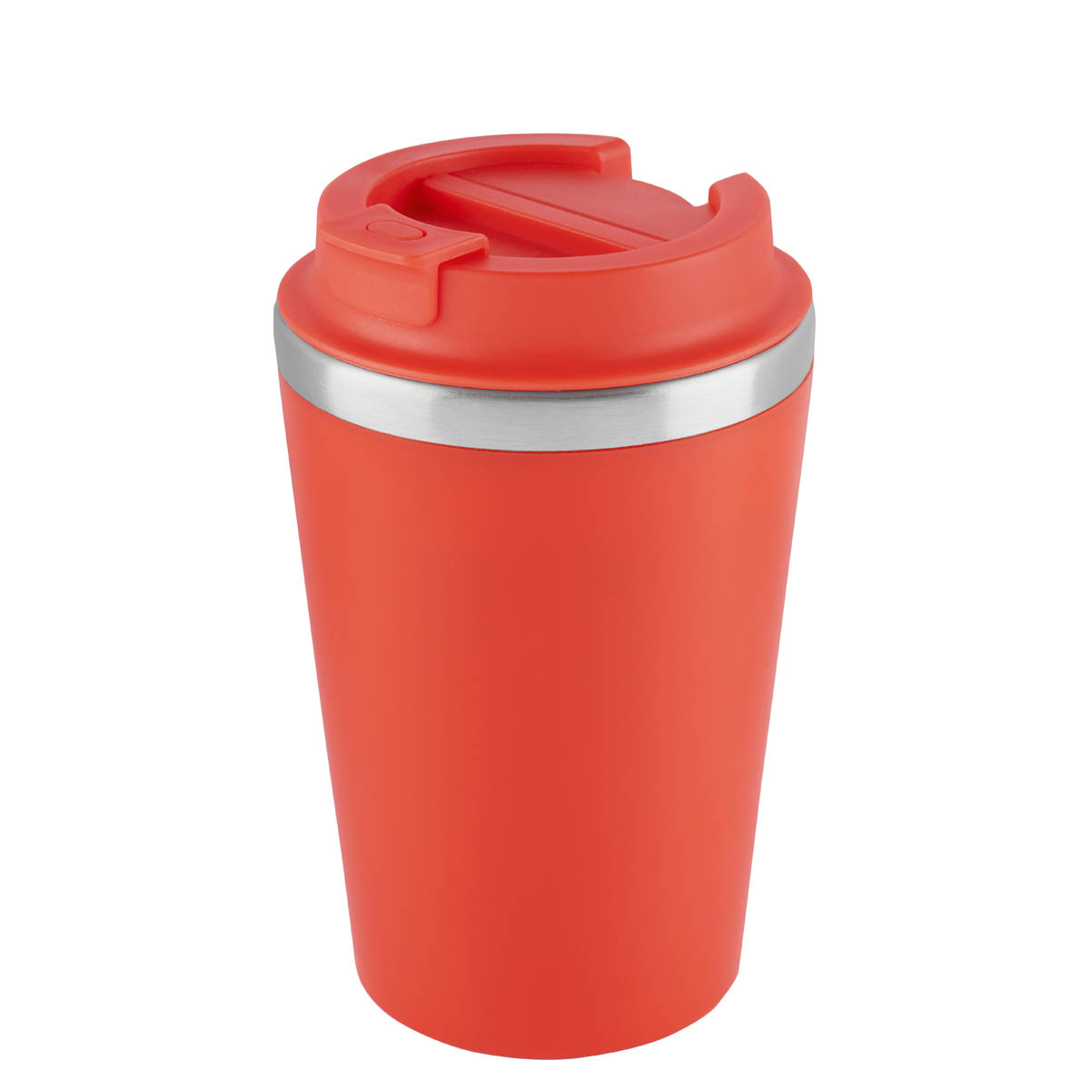 Termo doble pared. Pared interna de acero inoxidable y externa de plástico. Tapa con sistema de rosca que garantiza un cierre hermético. Sobretapa con sistema push que previene derrames. Su elegante detalle metálico, rompe con la monocromía y añade un toque de distinción. Capacidad de 12 Oz. Base de 7 cm de diámetro. Incluye caja individual.