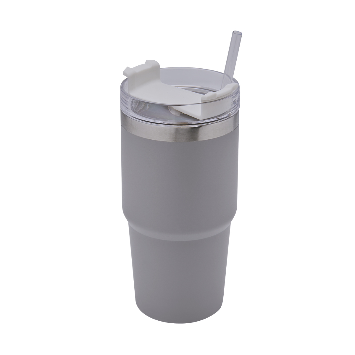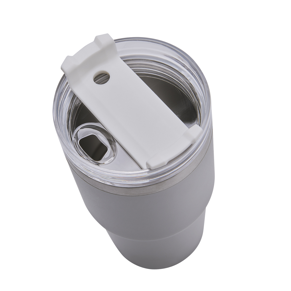 Doble pared. Cerrado al vacío. Pared interna y externa acero inoxidable. Recubrimiento en terminado tipo rugoso. Incluye popote y tapa de plástico con tres posiciones. Mantiene temperatura caliente 6 hrs y temperatura fría 8 hrs aproximadamente. Incluye caja individual.
