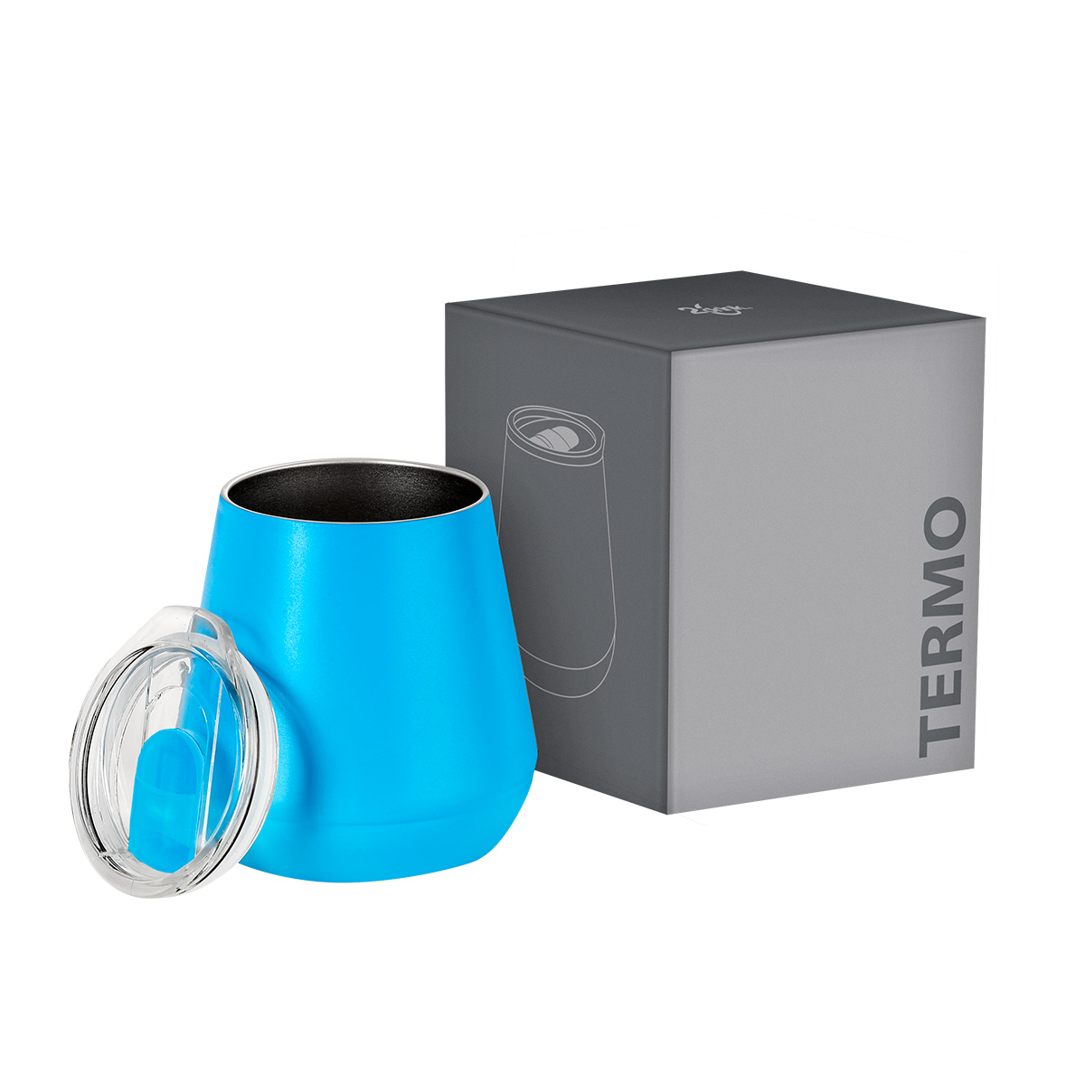 Termo doble pared. Cerrado al vacío. Pared interna y externa de acero inoxidable. Tapa de plástico con sistema push y válvula de seguridad. Cuerpo con terminado rugoso. Su estructura ligera y ergonómica facilita su traslado, mientras que sus colores brillantes, le añaden un toque de personalidad. Mantiene la temperatura caliente por 6 hrs y la temperatura fría por 8 hrs. Capacidad de 9 Oz. Incluye caja individual.