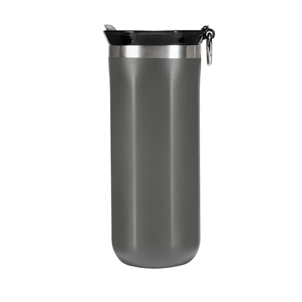 Doble pared. Cerrado al vacío. Pared interna y externa de acero inoxidable. Tapa de plástico con sistema de rosca, sobretapa de silicón y aro metálico removible. Mantiene temperatura caliente 6 hrs y temperatura fría 8 hrs aproximadamente. Incluye caja individual.