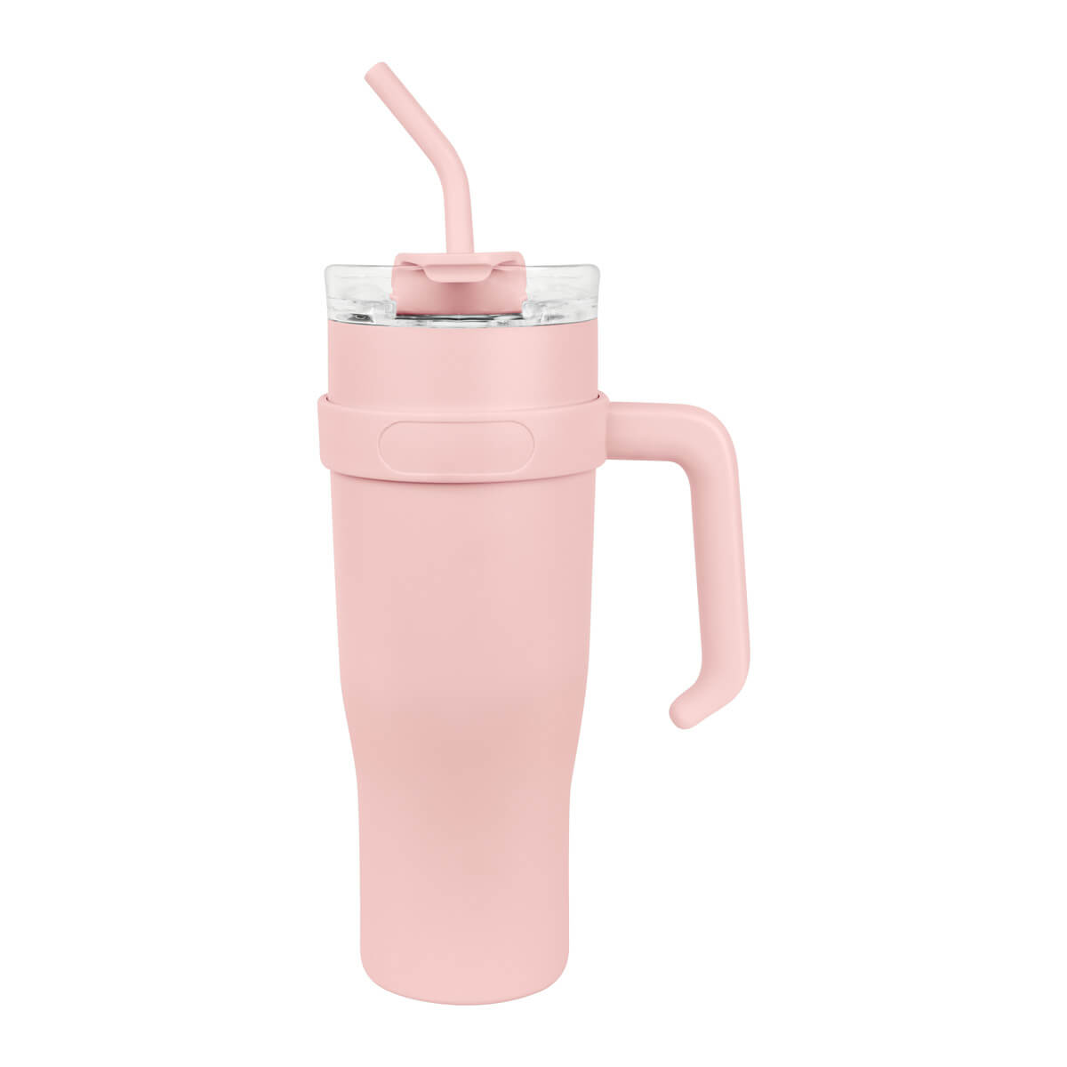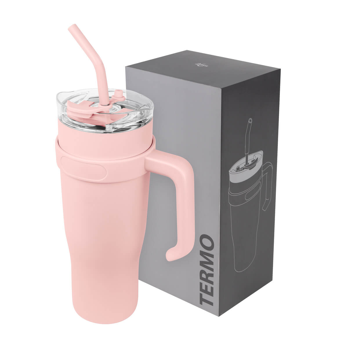 Termo doble pared. Cerrado al vacío. Pared interna y externa acero inoxidable. Cuerpo con terminado rugoso. Tapa de plástico y sobretapa con sistema push, incluye una ranura para popote con tapón de silicón. Su cuerpo de amplia capacidad lo hace perfecto para compartir o disfrutar de varias tazas de tu bebida favorita, además su asa ergonómica permite un transporte fácil y cómodo. Mantiene la temperatura caliente por 12 hrs y la temperatura fría por 20 hrs. Capacidad de 40 Oz. Base de 8.2 cm de diámetro. Incluye popote metálico con boquilla de silicón y caja individual.
