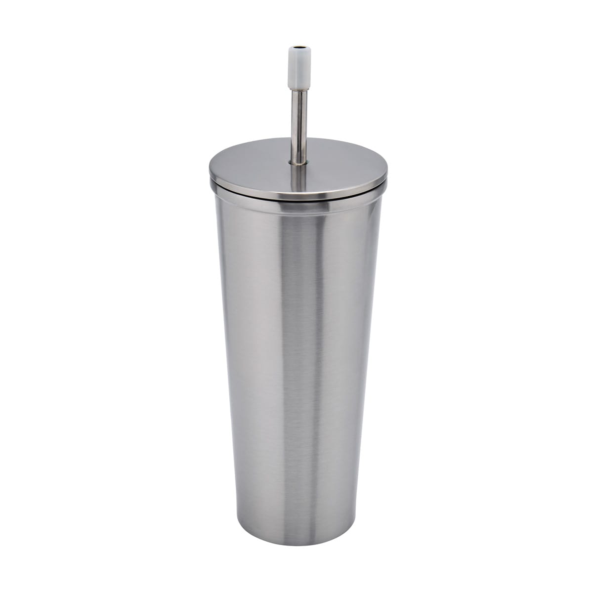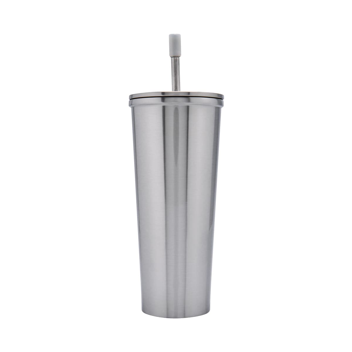 Doble pared. Cerrado al vacío. Pared interna y externa de acero inoxidable. Tapa de metal con plástico y cierre de rosca. Mantiene temperatura caliente 8 hrs y temperatura fría 10 hrs aproximadamente. Incluye popote metálico con boquilla de silicón. Caja individual incluida.