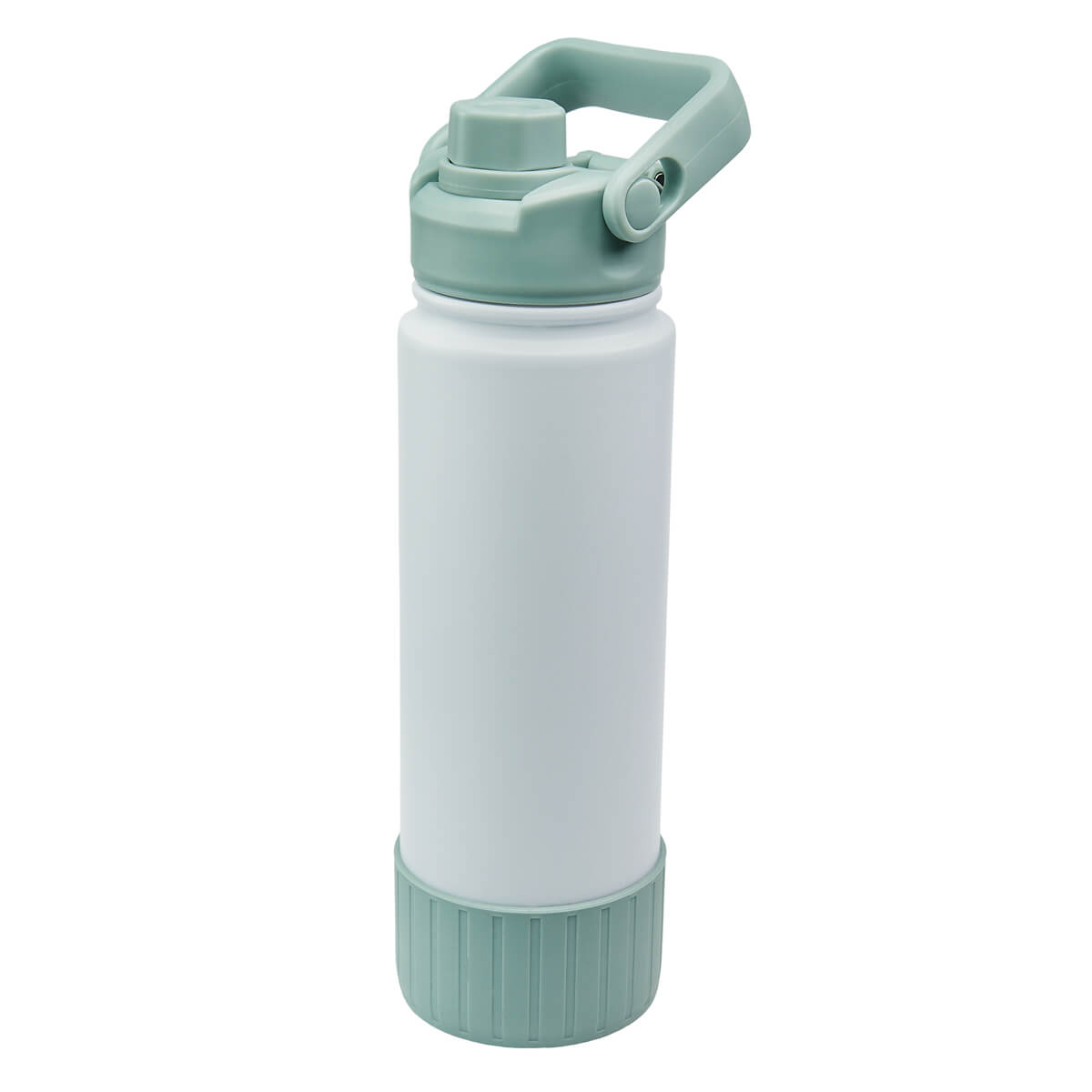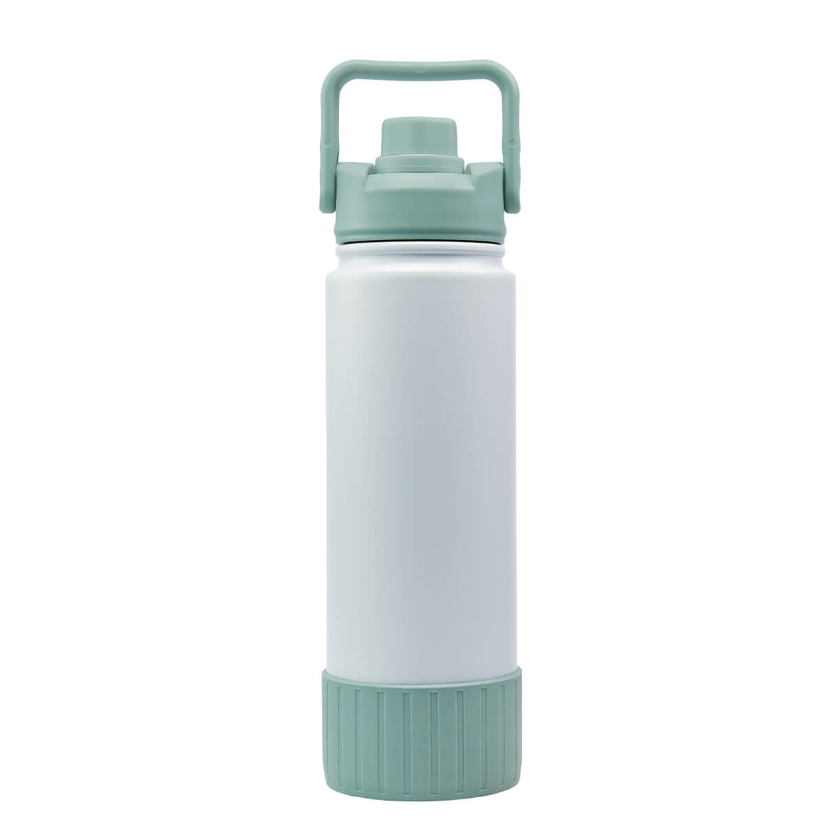 Termo doble pared. Cerrado al vacío. Pared interna y externa de acero inoxidable. Tapa y sobre tapa de plástico con diseño innovador, su cierre de rosca permite un sellado seguro que permite beber fácilmente. Cuenta con un asa plegable para llevarlo a todos lados, ideal para oficina o actividades al aire libre. Incluye una manga de silicón antiderrapante sobre la base, que permite protegerla de golpes y raspones. Mantiene tus bebidas calientes por 12 hrs y frías hasta 16 hrs. Capacidad de 24 Oz. Incluye caja individual.