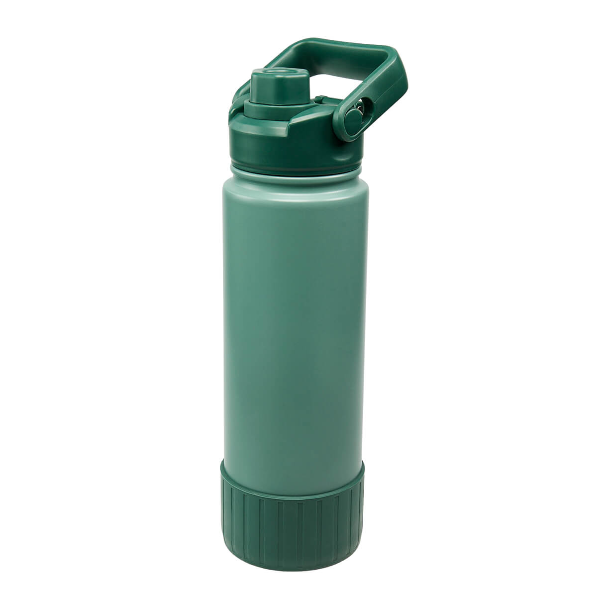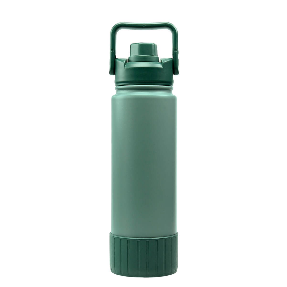 Termo doble pared. Cerrado al vacío. Pared interna y externa de acero inoxidable. Tapa y sobre tapa de plástico con diseño innovador, su cierre de rosca permite un sellado seguro que permite beber fácilmente. Cuenta con un asa plegable para llevarlo a todos lados, ideal para oficina o actividades al aire libre. Incluye una manga de silicón antiderrapante sobre la base, que permite protegerla de golpes y raspones. Mantiene tus bebidas calientes por 12 hrs y frías hasta 16 hrs. Capacidad de 24 Oz. Incluye caja individual.