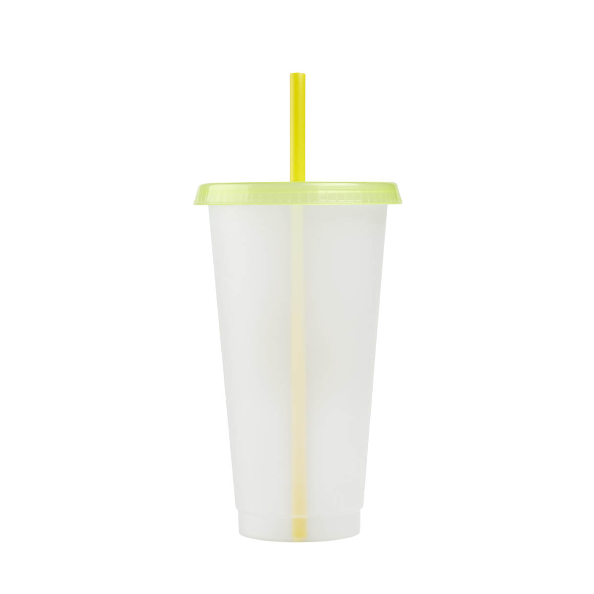 Vaso de plástico de una pared. Añade fantasía y diversión, con este vaso que cambia de color al verter bebidas frías. Su tapa y popote, coinciden con el tono que el vaso revelará al enfriarse, dando como resultado, un conjunto armonioso y divertido. Perfecto para quienes buscan una experiencia refrescante y visualmente atractiva en cada bebida. Capacidad 27 Oz. Base de 6.4 cm.