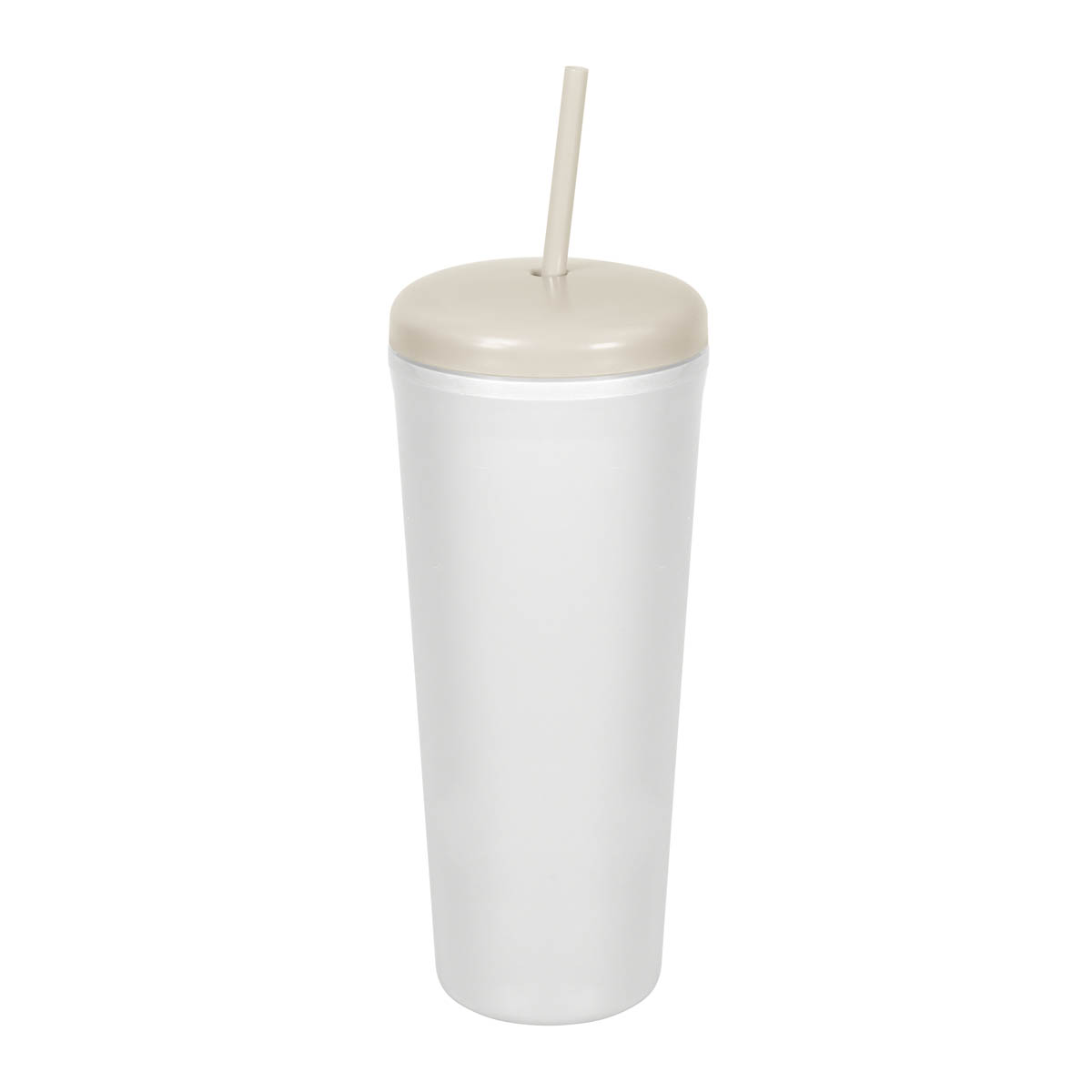 Doble pared. Pared interna y externa de plástico. Tapa de plástico con cierre de rosca, incluye popote de plástico. Su singular diseño y su tapa hermética, garantizan que puedas disfrutar de tus bebidas favoritas en cualquier lugar, sin preocuparte por derrames. Capacidad de 22 Oz. Base de 6.7 cm de diámetro. Incluye caja individual.