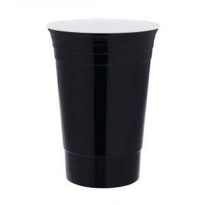 Vaso de plástico doble pared. Interior color blanco.Material: PlásticoCapacidad: 480 mlMedidas: 9.7 x 14 cm