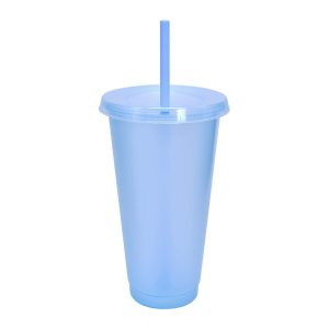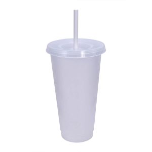 Vaso de plástico con tapa push y popote. Capacidad 27 oz. Base de 6.4 cm de diámetro.Material: PlásticoCapacidad: 800 mlMedidas: 10.8 cm x 18 cm