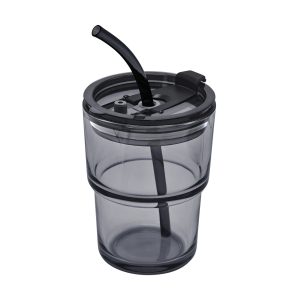 Vaso de vidrio de una pared. Tapa y sobre tapa de plástico con sistema push y ranura especial de silicón con tapón para popote. Incluye popote de plástico. Caja individual incluida.Material: Vidrio / PlásticoCapacidad: 450 mlMedidas: 8.9 x 12.8 cm