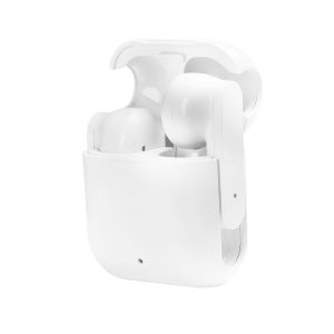 Audífonos bluetooth con base recargable. Controles integrados touch para llamadas, volumen y reproducción de audio. Reproducción de música de 4 hrs aproximadamente. Rango de conexión de 10 metros. Batería de 30 mAh en los auriculares y 300 mAh en el estuche de carga. Incluye cable cargador USB, estuche de carga con conexión tipo C y caja individual.Material: PlásticoCapacidad: Medidas: 5.2 x 3 x 5.2 cm